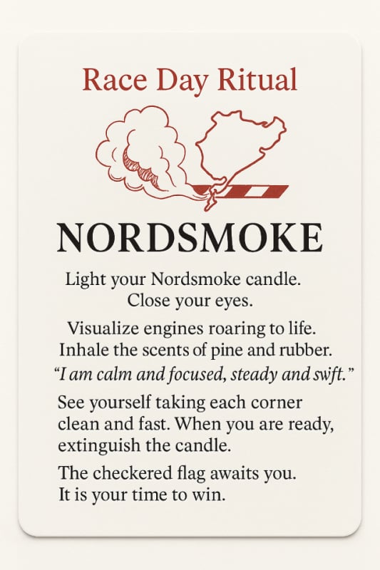 Infused with the grounding scent of pine and smoke, Nordsmoke channels raw momentum, track focus, and inner grit. Light it before a journey, during shadow work, or when you need clarity in the chaos.